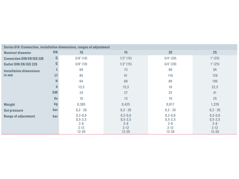 Zawór bezpieczeństwa Seria 614, Rozmiar gwintu (2): 1" BSPP, Średnica nominalna DN: DN25