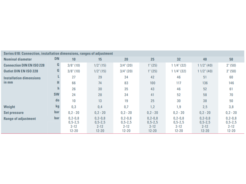 Zawór bezpieczeństwa Seria 618, Rozmiar gwintu (2): 1.1/2" BSPP, Średnica nominalna DN: DN20