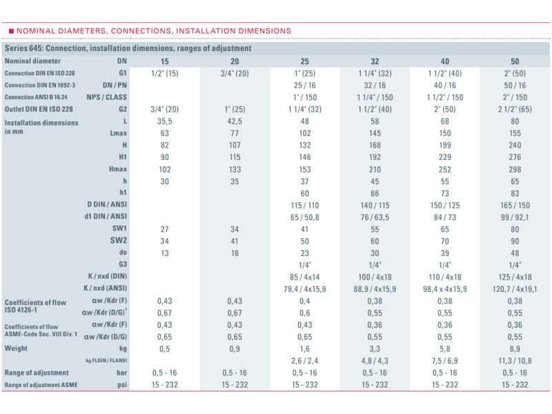Zawór bezpieczeństwa Seria 645, Rozmiar gwintu (2): 3/4" BSPP, Średnica nominalna DN: DN20