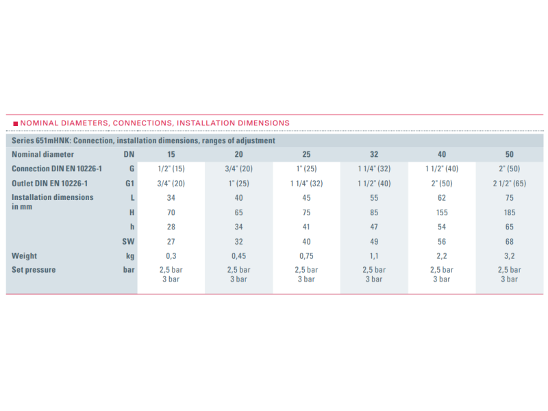 Zawór bezpieczeństwa Seria 651mHNK, Rozmiar gwintu (2): 1.1/2' BSPP - 2" BSPP, Średnica nominalna DN: DN25