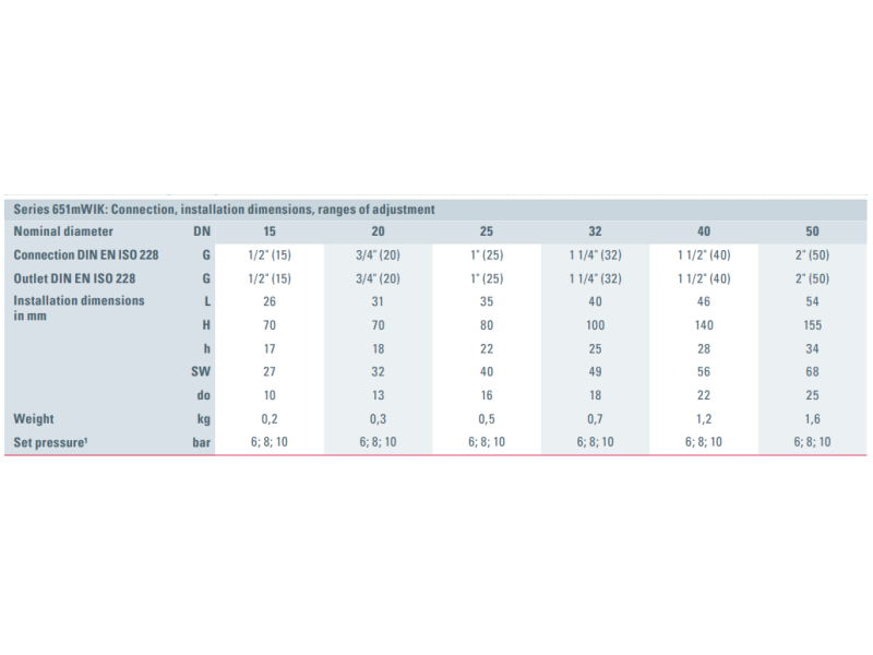 Zawór bezpieczeństwa Seria 651mWIK, Rozmiar gwintu (2): 2" BSPP, Średnica nominalna DN: DN25