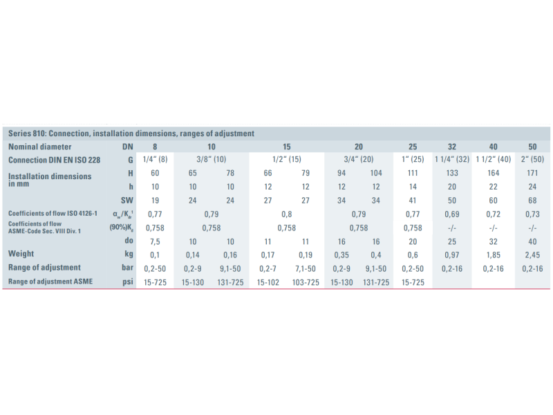 Zawór bezpieczeństwa Seria 810, Rozmiar gwintu (2): 3/4" BSPP, Średnica nominalna DN: DN50