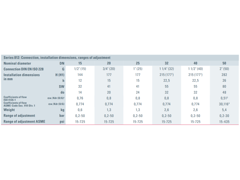 Zawór bezpieczeństwa Seria 812, Rozmiar gwintu (2): 1.1/4" BSPP, Średnica nominalna DN: DN15