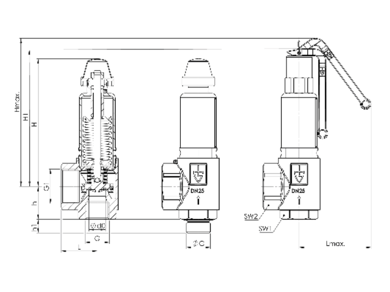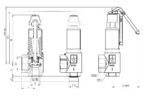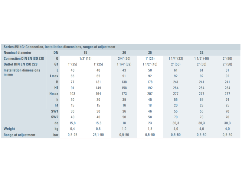 Zawór bezpieczeństwa Seria 851bG, Rozmiar gwintu (2): 1.1/4" BSPP - 2" BSPP, Średnica nominalna DN: DN15