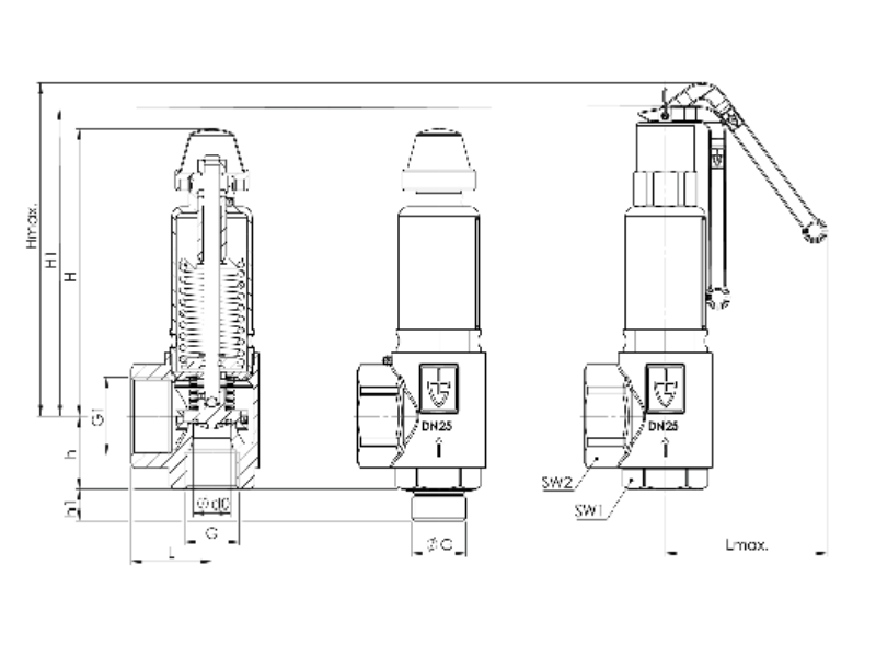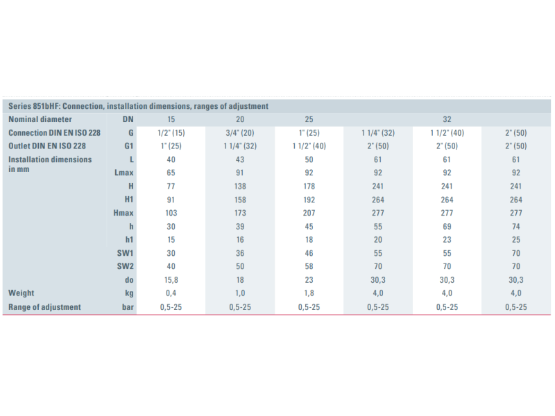 Zawór bezpieczeństwa Seria 851bHF, Rozmiar gwintu (2): 3/4" BSPP - 1.1/4" BSPP, Średnica nominalna DN: DN32