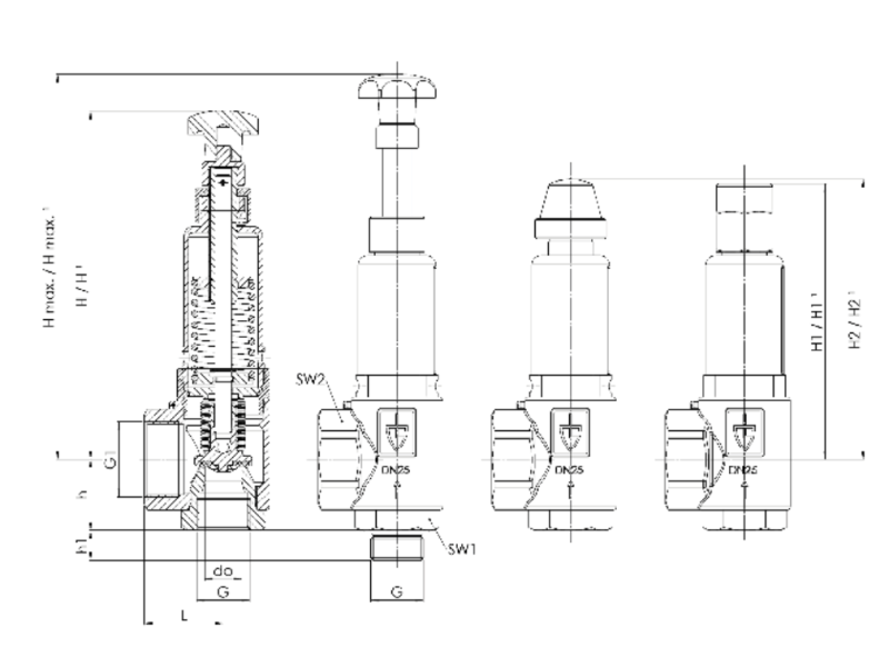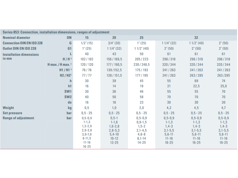 Zawór bezpieczeństwa Seria 853, Rozmiar gwintu (2): 1.1/4" BSPP - 2" BSPP, Średnica nominalna DN: DN32
