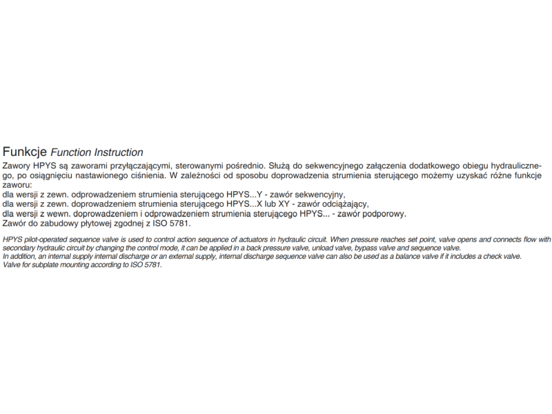 Kod produktu: HPYS ID: 2470685Zawory HPYS są zaworami przyłączającymi, sterowanymi pośrednio.Służą do sekwencyjnego załączenia dodatkowego obiegu hydraulicznego o osiągnięciu ustalonego ciśnienia.