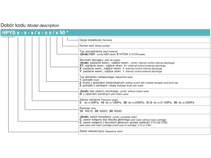 Zawór ciśnieniowy sekwencyjny NG10, NG20, NG30, Rozmiar CETOP: NG10, Model: HPYS..D..Y/..