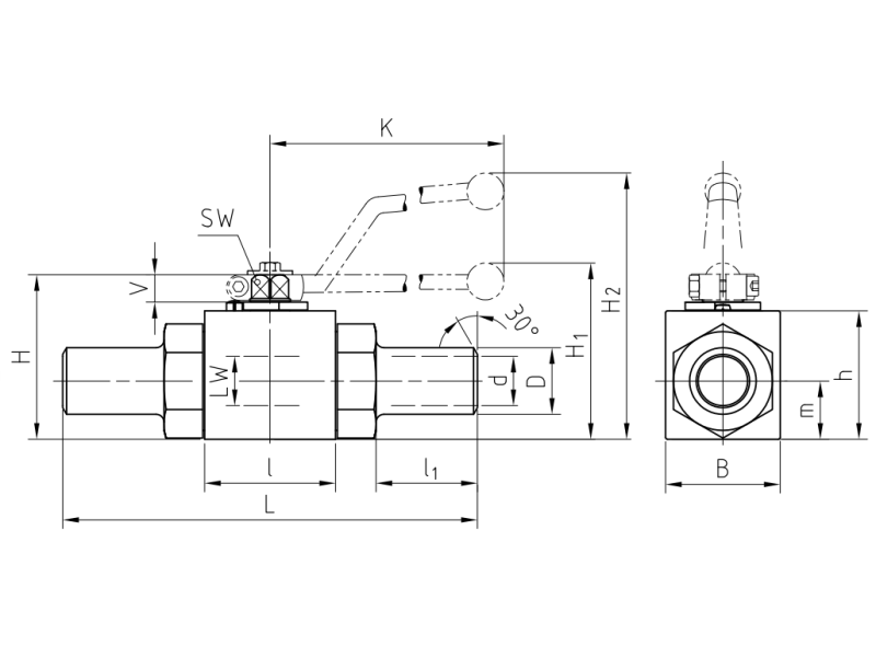 Zawór kulowy 2 drogowy z końcówkami do wspawania DN10 - DN25/40 160 Bar, Materiał: Stal nierdzewna, Rozmiar zaworu: DN16