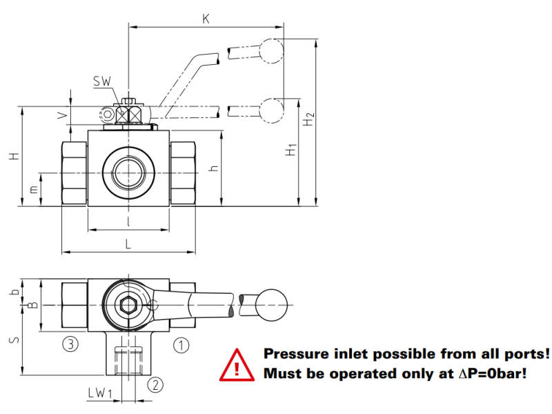 Zawór kulowy 3/2 drogowy DN4 - DN50 do 500 Bar (ciśnienie ze wszystkich portów), Materiał: Stal ocynkowana Cr(VI)-free, Rozmiar zaworu: DN20 1.1/16" UN