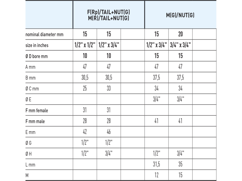 Temperature limits: for gas from –15°C to +60°C Pressure limits: for gas MOP5