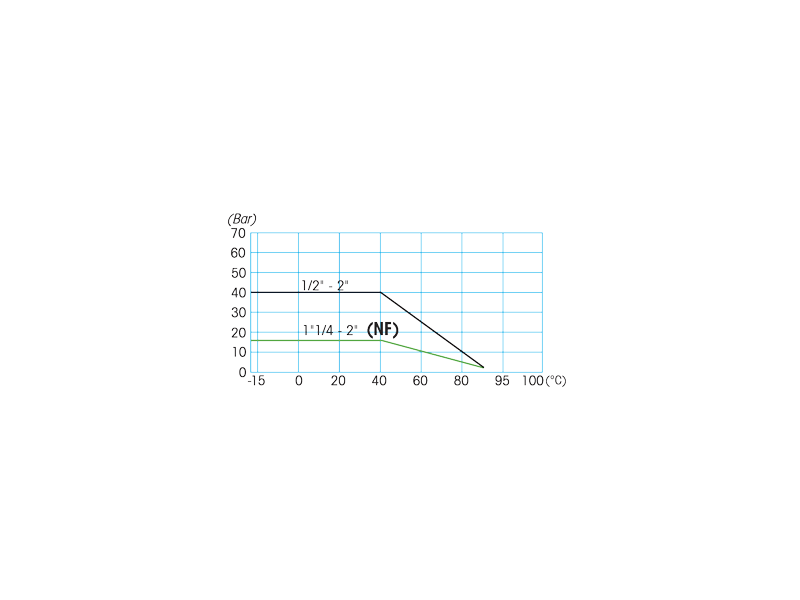 Wartości graniczne ciśnienia: dla cieczy od PN40