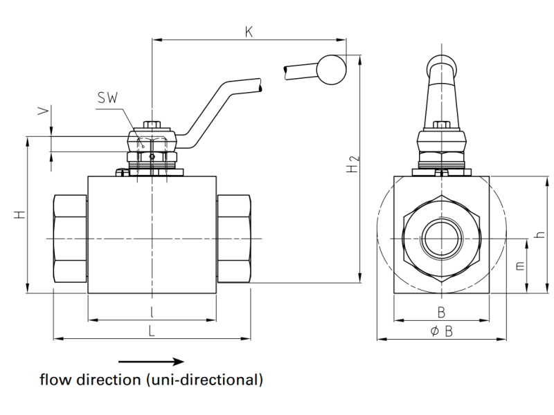 Zawór kulowy gwintowany blokowy z dopuszczeniem ognioodpornym DN13 - DN50 do 420 Bar, Materiał: Stal nierdzewna, Rozmiar zaworu: DN50