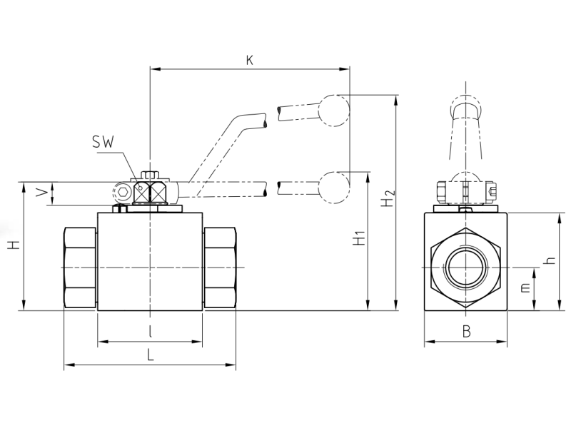 Zawór kulowy gwintowany do gazu DN4 - DN25/40 do 500 bar, Materiał: Stal ocynkowana Cr(VI)-free, Rozmiar zaworu: DN08 10L
