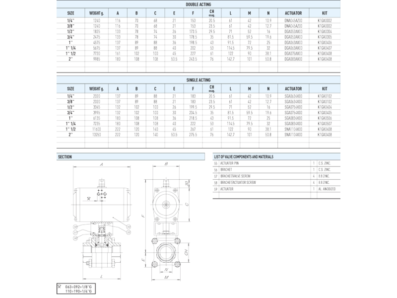 Zawór kulowy serii ARGOS z siłownikiem pneumatycznym