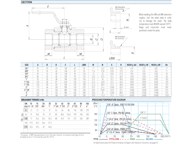 SERIA 3000: PN210 1/4 ”- 4” DELRIN (maks. 70 ° C).