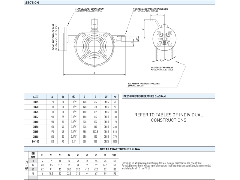 • POŁĄCZENIA KURTKI: gaz FF lub KOŁNIERZ PN16.