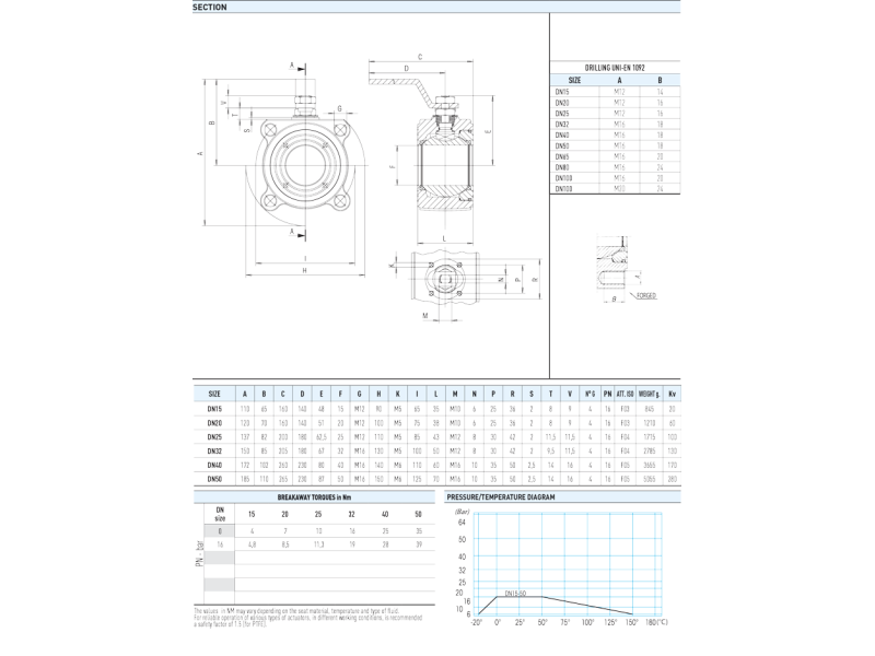 • CIŚNIENIA: PN16.• GRANICE TEMPERATURY: -20 ° C / + 150 ° C dla cieczy -20 ° C / + 60 ° C dla gazu.