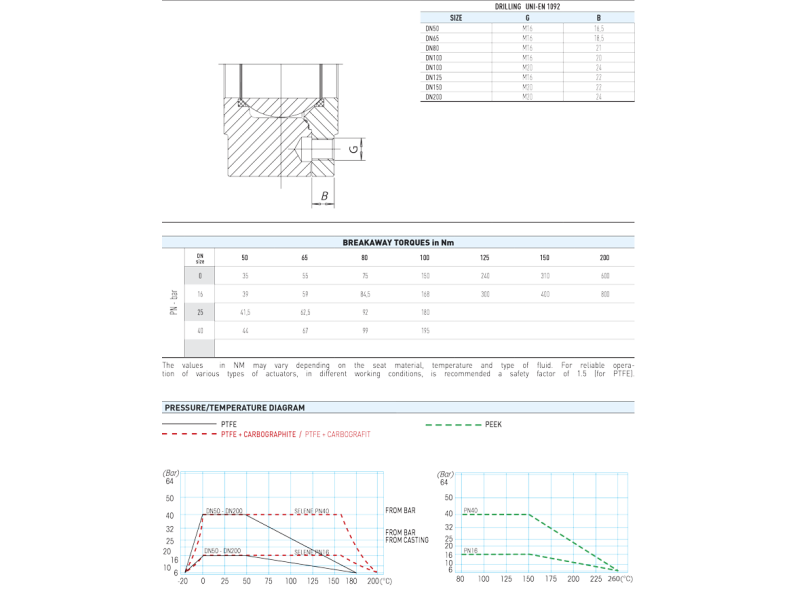 • GRANICE TEMPERATURY: -20 ° C / 180 ° C (PTFE).