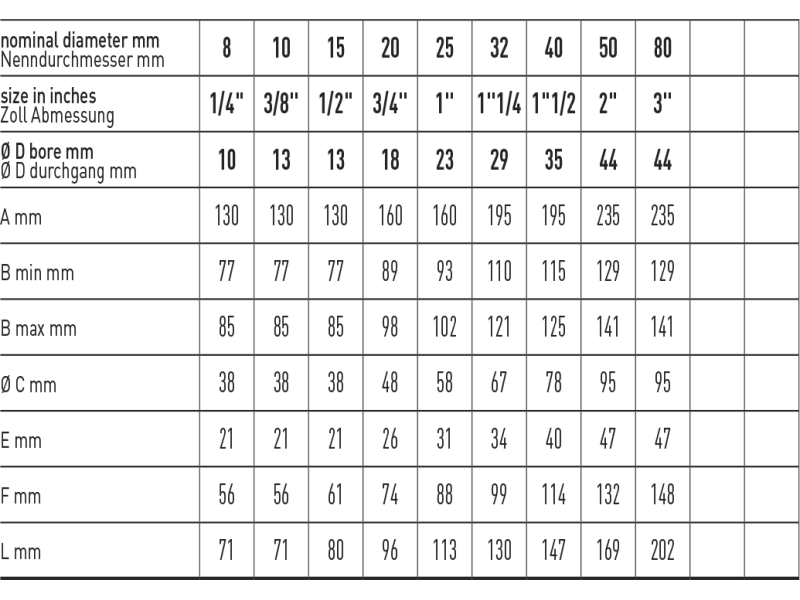 Limity temperatur: dla cieczy od –15 ° C do + 100 ° C Wartości graniczne: dla mediów od 40 bar do 16 bar
