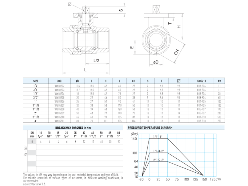 • CIŚNIENIA: PN140 1/4 "- 1" (RPTFE)PN100 1 "1/4 - 2" (RPTFE)PN64 2 "1/2 - 3" (RPTFE)• LIMITY TEMPERATURY: -20 ° C / + 150 ° DO.