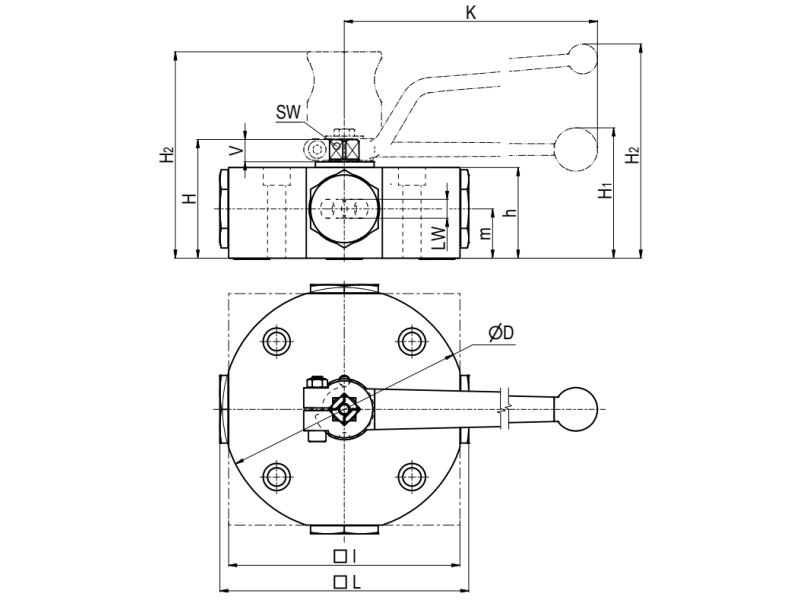 Zawór kulowy wielodrogowy do zamontowania na kolektorze DN6 - DN40 do 500 Bar, Materiał: Stal nierdzewna, Rozmiar zaworu: DN13