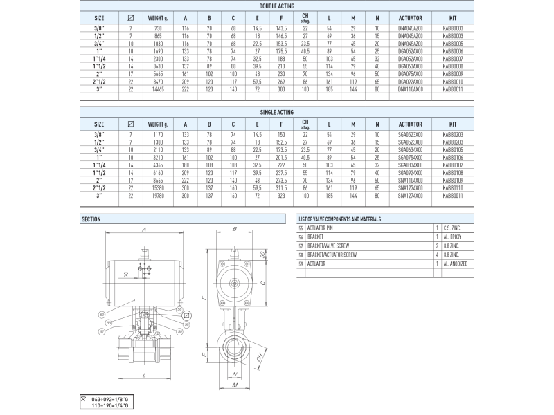 Zawór kulowy z siłownikiem pneuatycznym serii TOTAL
