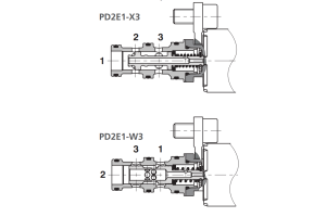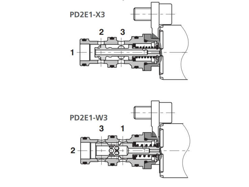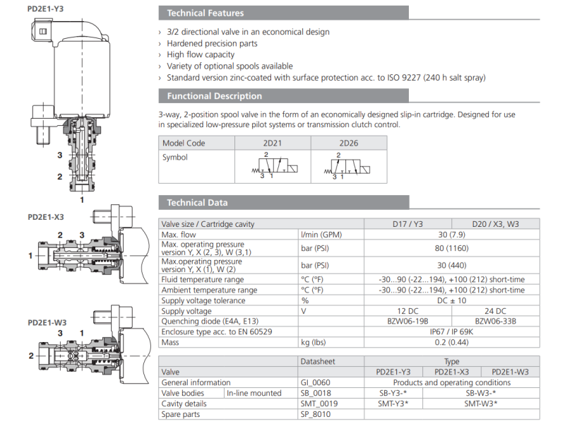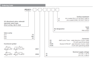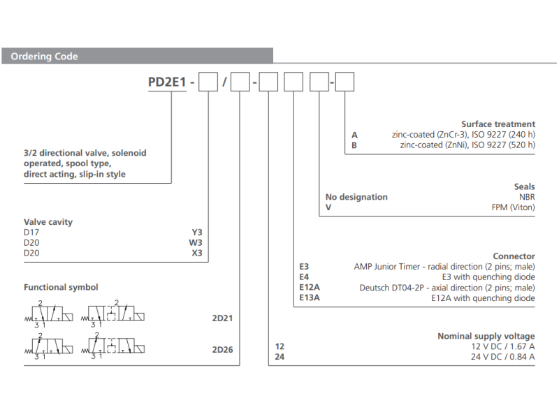 Zawór PD2E1, Napięcie: 24V, Surface treatment: B, Seals: V, Connector: E12A, Valve cavity: X3, Functional symbols: 2D26