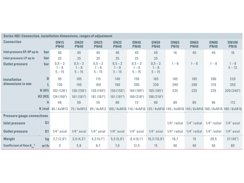 Zawór redukujący ciśnienie Seria 482, Średnica nominalna DN: DN15
