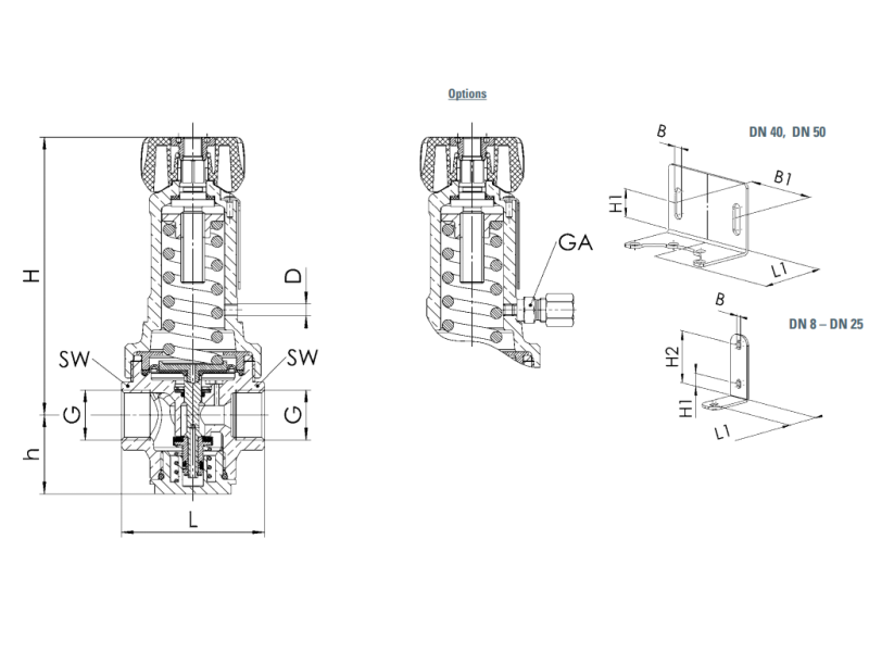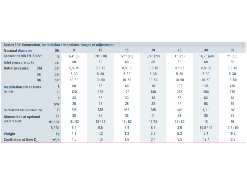 Zawór redukujący ciśnienie Seria 684, Rozmiar gwintu (2): 3/4" BSPP, Średnica nominalna DN: DN50