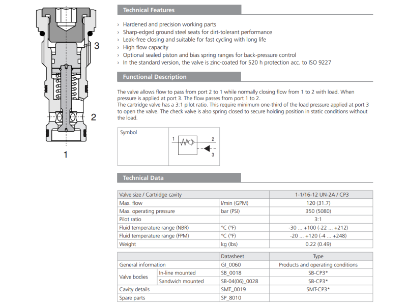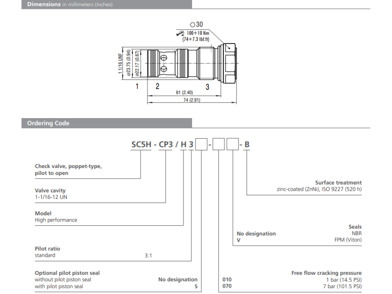 Zawór SC5H-CP3, Pilot piston seal: No designation, Seals: No designation, Cracking pressure: 070