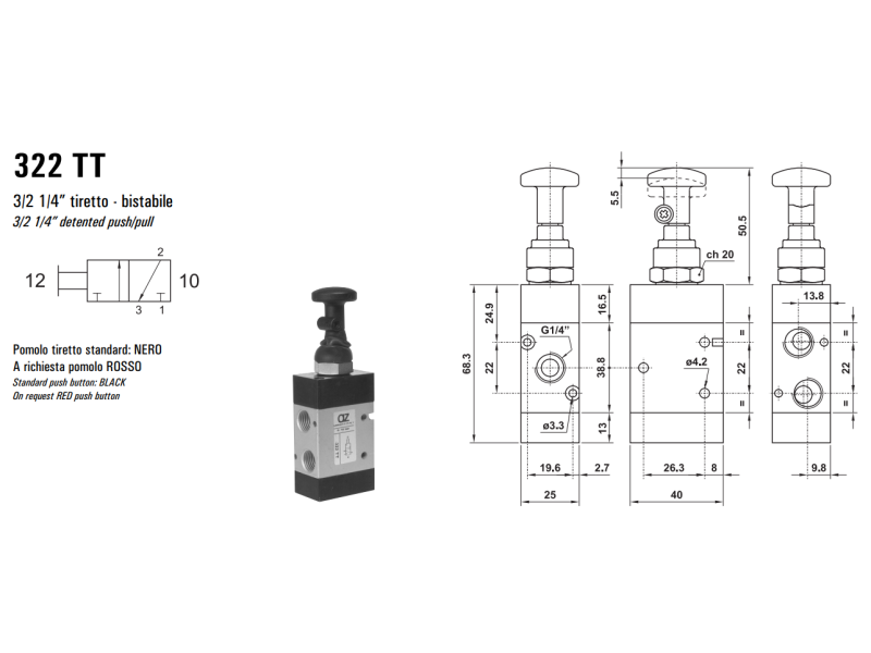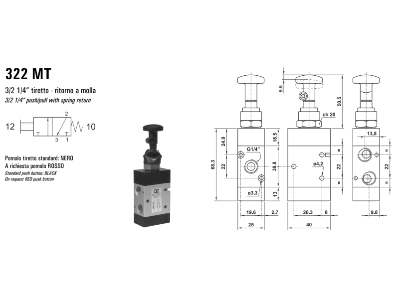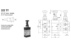 Zawór sterowany manualnie 322 MT/TT, Funkcje: Bez sprężyny powrotnej.