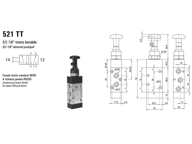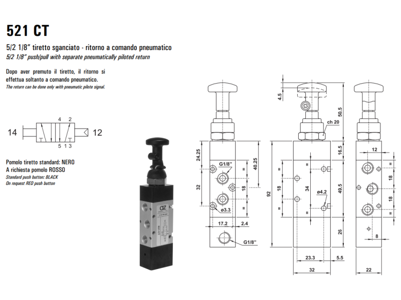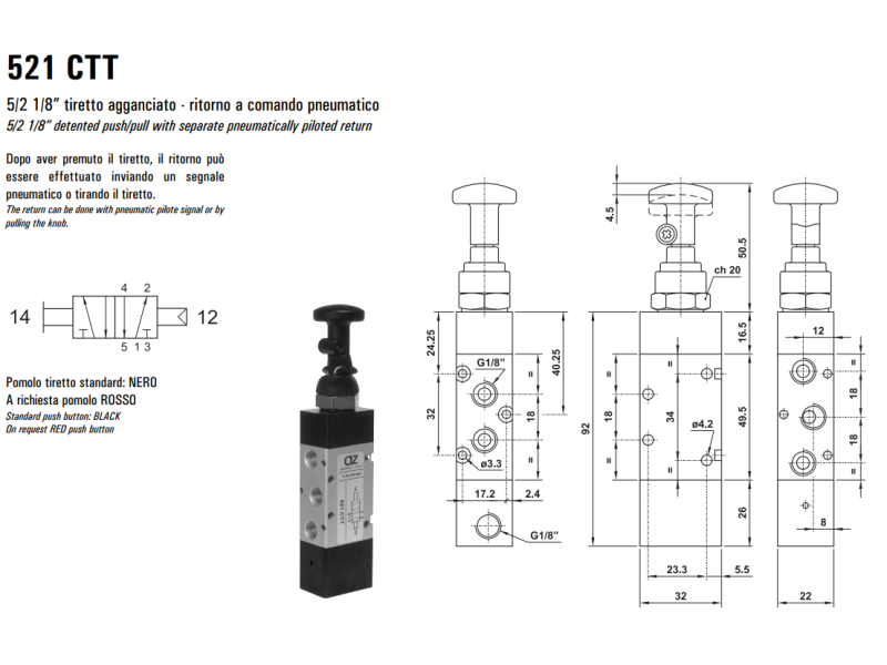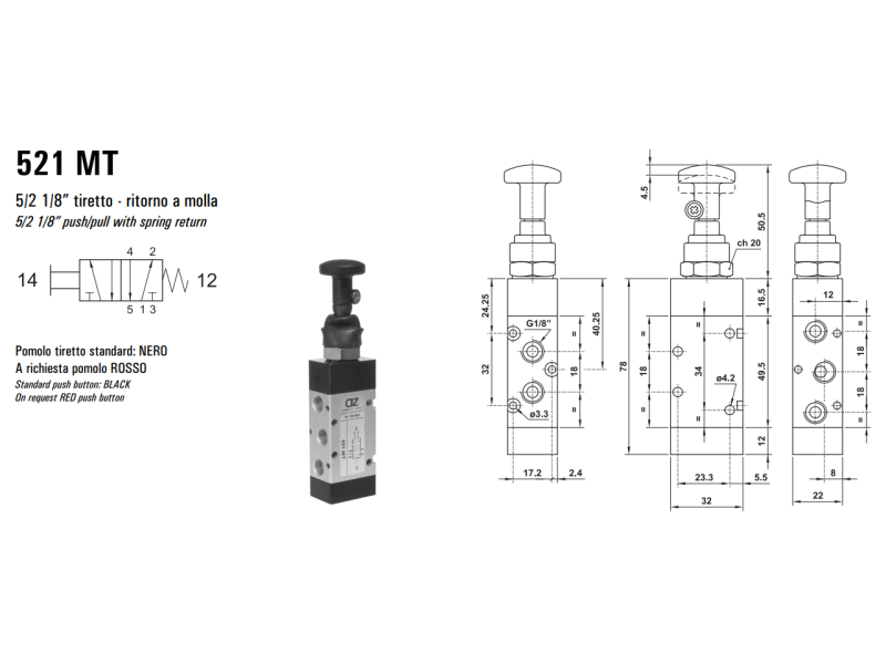 Zawór sterowany manualnie 521 MT/TTCT/CTT, Funkcje: Bez sprężyny powrotnej.