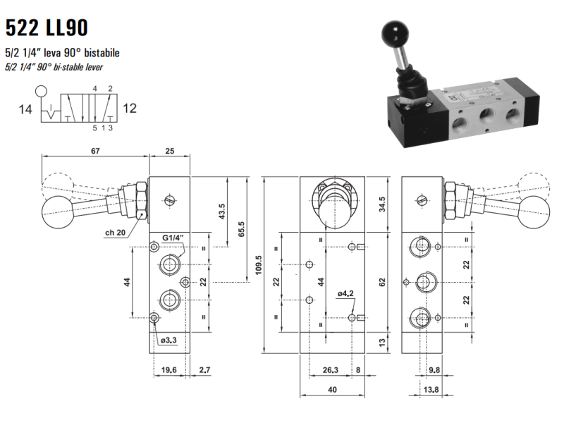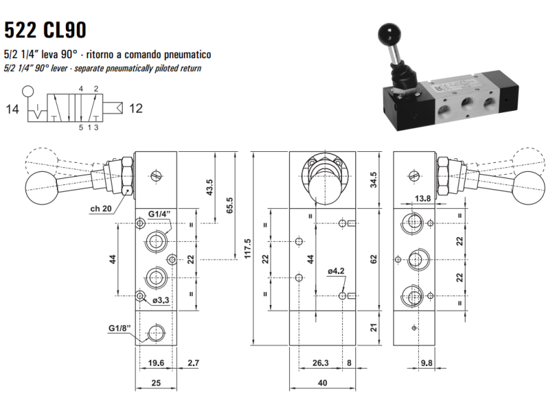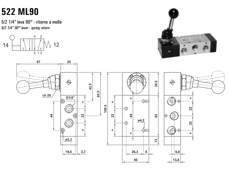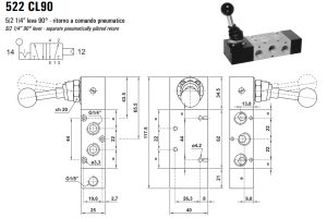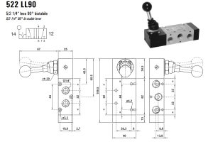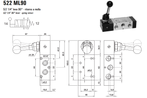 Zawór sterowany manualnie 522 ML90/LL90/CL90, Funkcje: Bez sprężyny powrotnej.