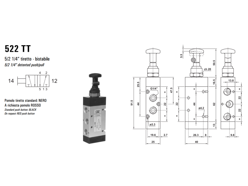 Zawór sterowany manualnie 522 MT/TT, Funkcje: Bez sprężyny powrotnej.