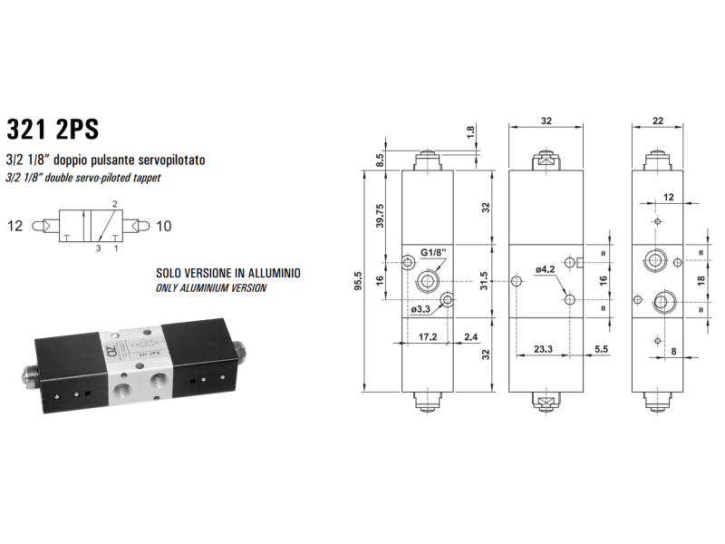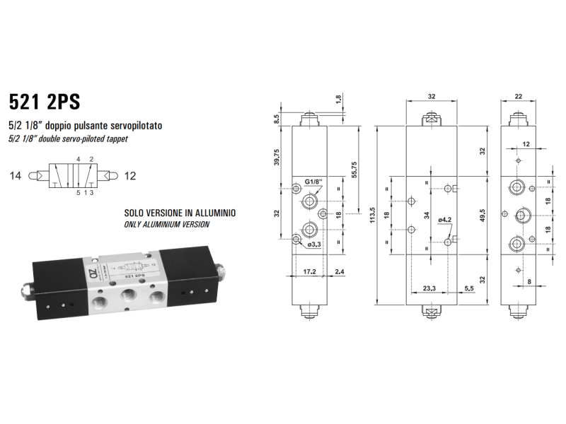 Zawór sterowany mechanicznie 321/521 2PS, Elektrozawory - pozycje zaworu: 5/2