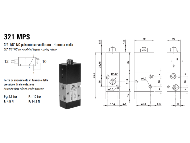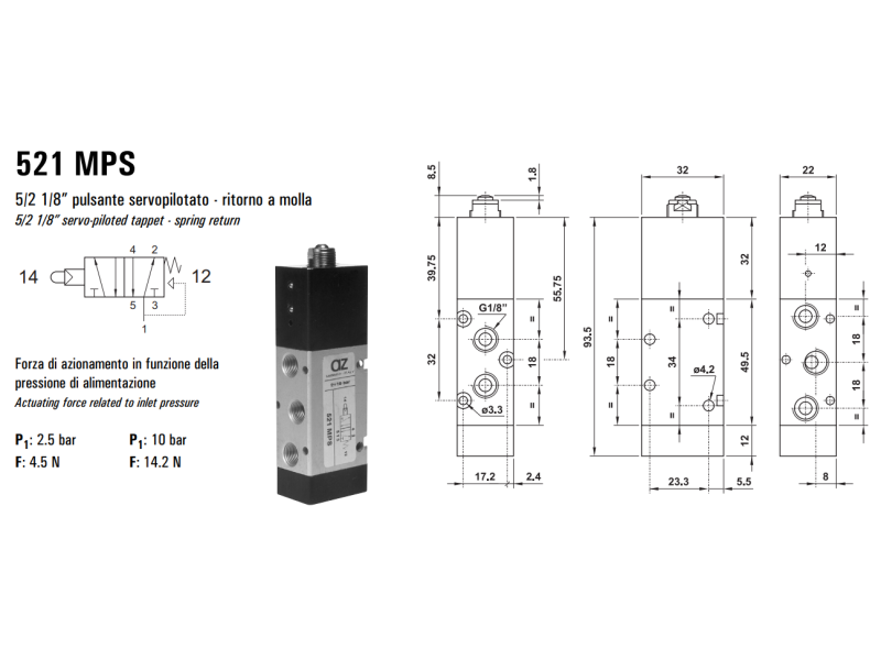 Zawór sterowany mechanicznie 321/521 MPS, Elektrozawory - pozycje zaworu: 5/2