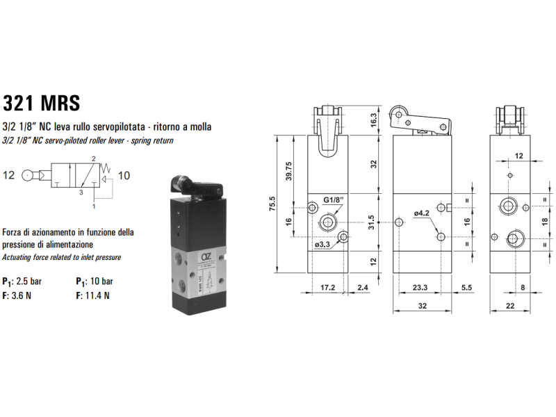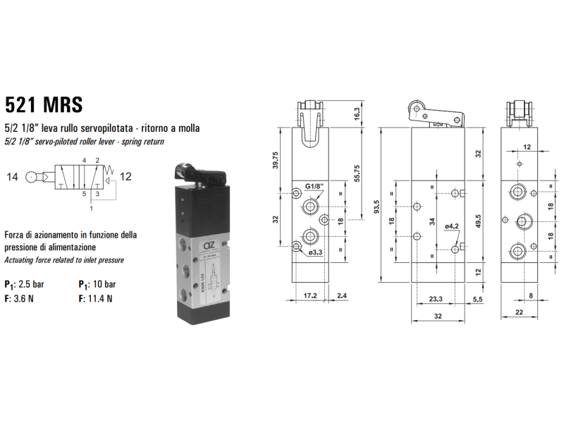 Zawór sterowany mechanicznie 321/521 MRS, Elektrozawory - pozycje zaworu: 5/2
