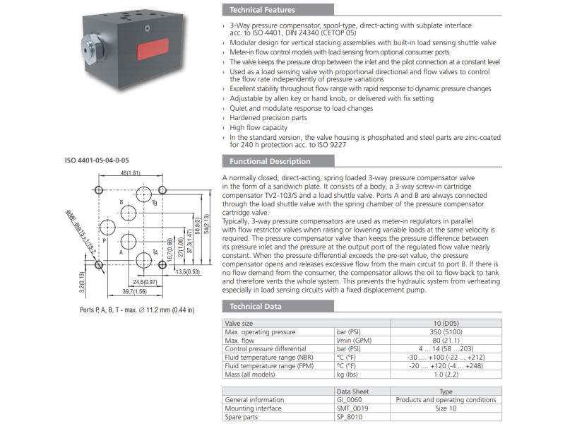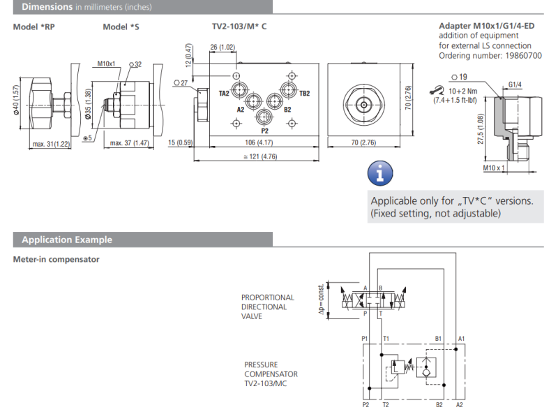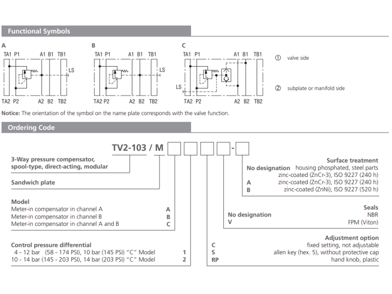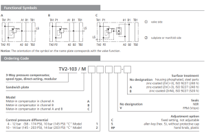 Zawór TV2-103/M, Surface treatment: B, Seals: V, Adjustment option: S, Model: C, Control pressure differential: 1