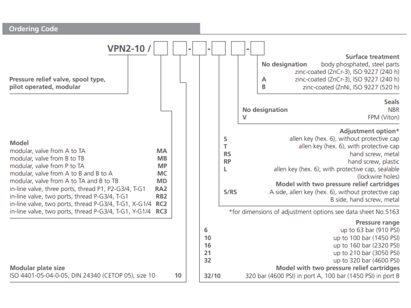 Zawór VPN2-10/M(R), Surface treatment: B, Seals: No designation, Pressure range: 32, Adjustment option: S/RS, Model: MA