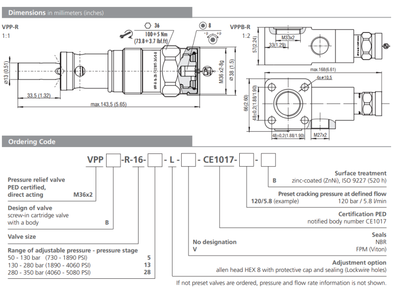 Zawór VPP-R-16-xx-L-CE1017, Seals: No designation, Range of adjustable pressure - pressure stage: 5