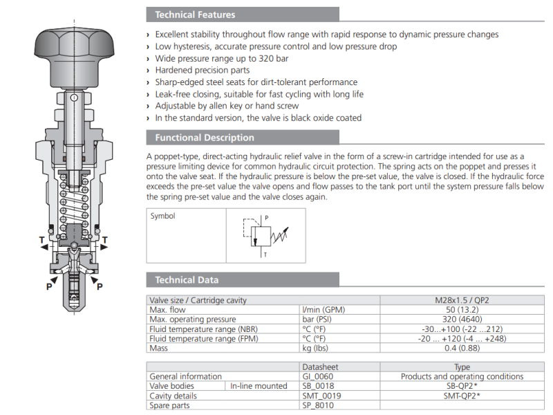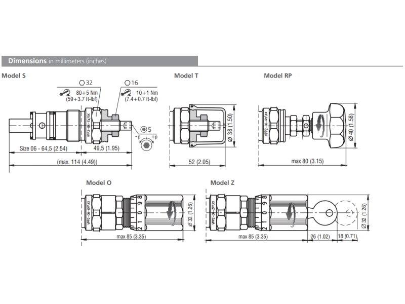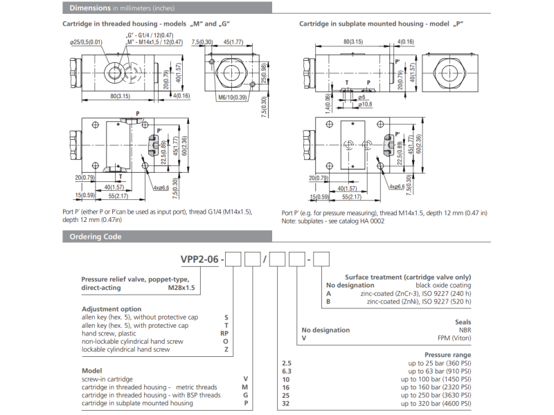 Zawór VPP2-06, Surface treatment: B, Seals: No designation, Adjustment option: S, Pressure range: 6.3, Model: M