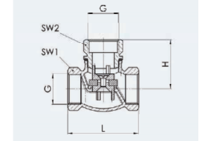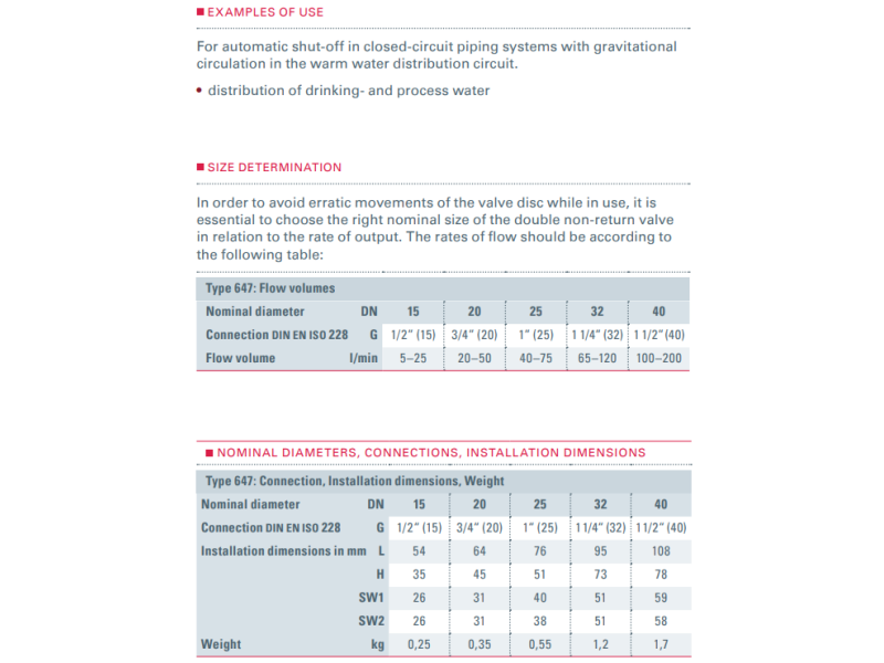 Zawór zwrotny Typ 647, Rozmiar gwintu (2): 3/4" BSPP, Średnica nominalna DN: DN15