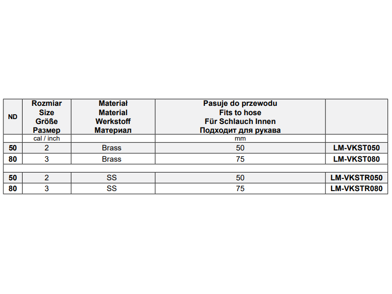 Złącza cysternowe Typ VKST, Średnica DN: 80 mm