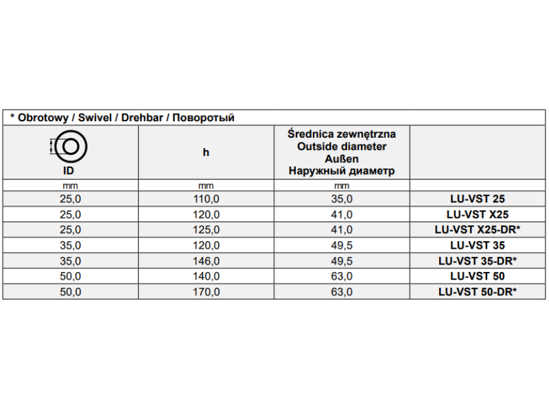 Złącza do tynkowania Typ VST, Średnica DN: 35 mm
