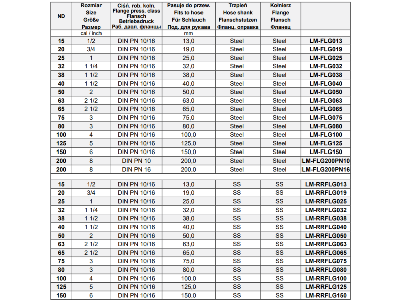 Złącza kołnierzowe, obrotowe do obejmy skorupowej LM-FLG, Średnica DN: 100 mm