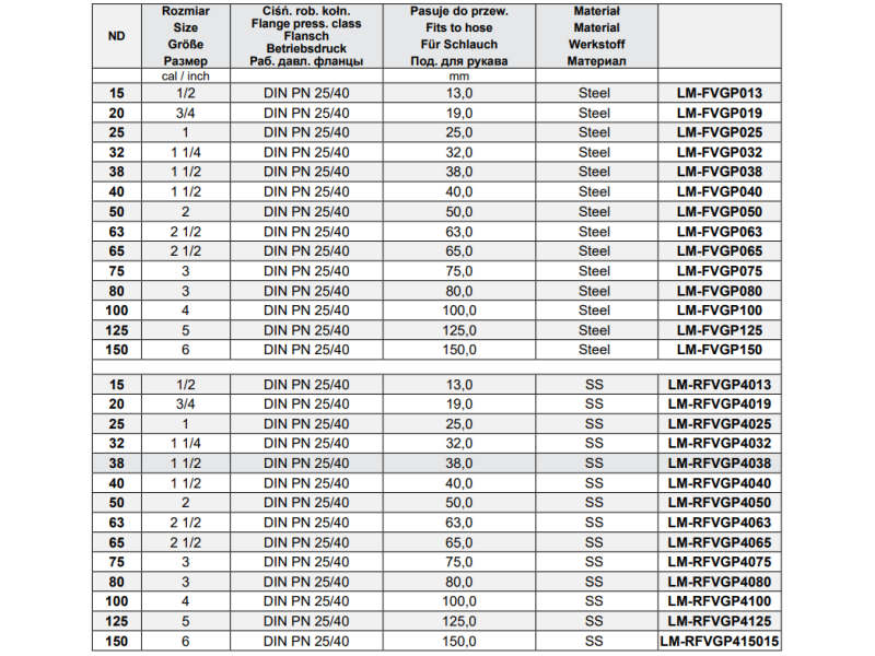Złącza kołnierzowe, stałe do obejmy skorupowej LM-FVGP, Średnica DN: 80 mm
