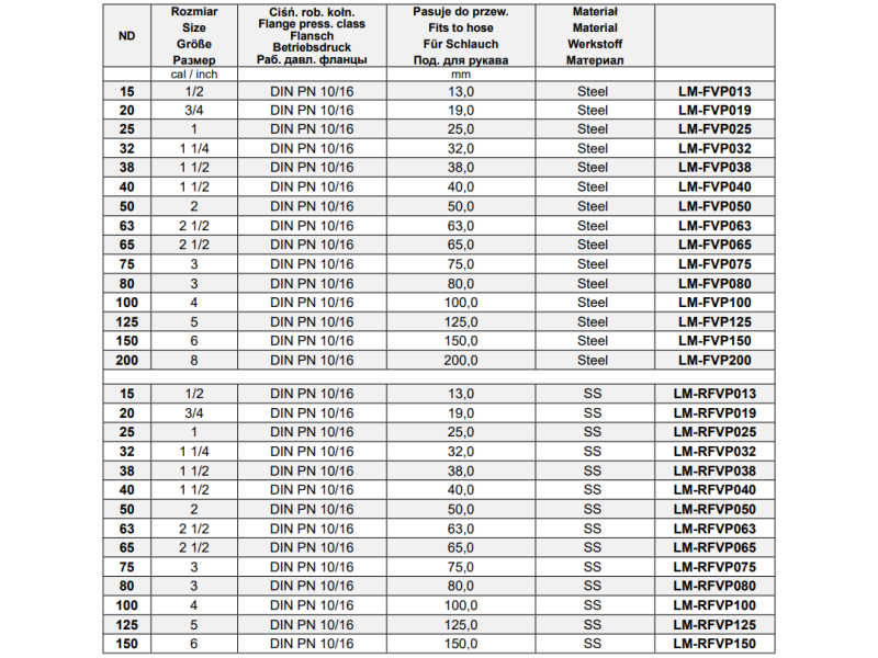 Złącza kołnierzowe, stałe pod opaski zaciskowe LM-FVP, Średnica DN: 125 mm