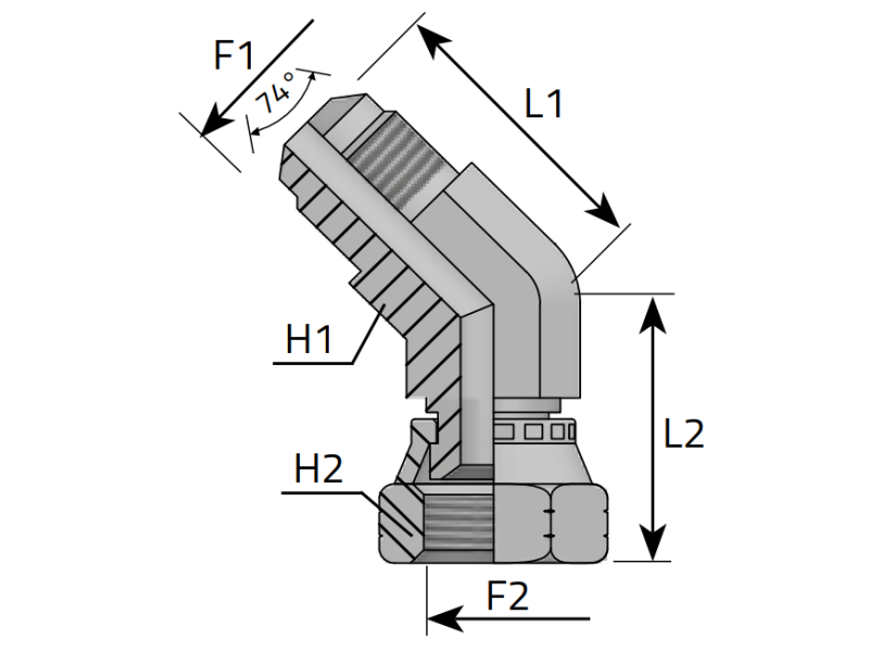 Kod produktu: HS-KAT-EV-JIC-CRV-1.7/8JIC ID: 2508860Złącze kątowe 45° z gwintem zewnętrznym calowym JIC na gwint wewnętrzny calowy JIC ze stożkami 74°.