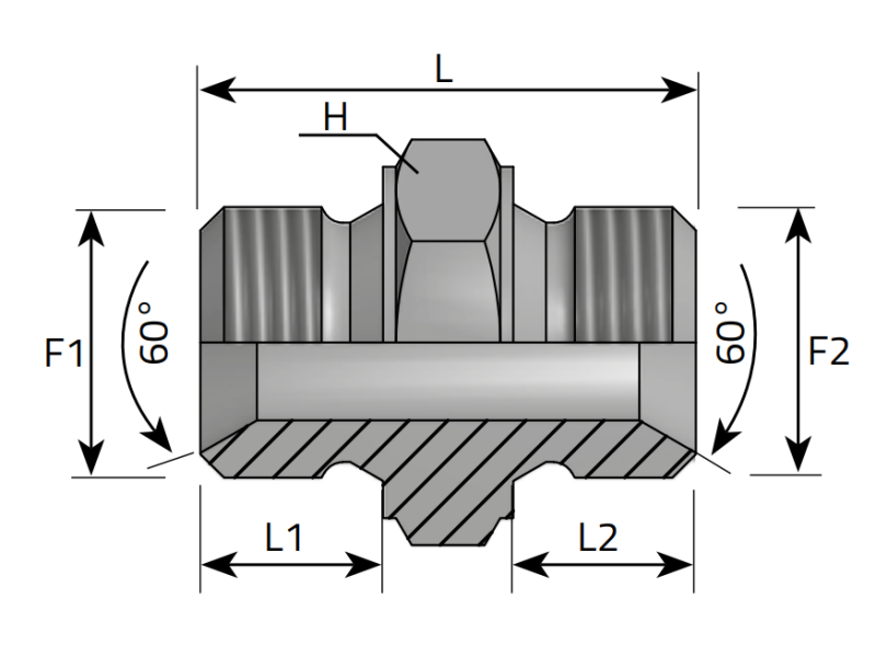 Kod produktu: HS-PRO-G-BSPP-CRV-1BSPP ID: 2476108Złącze proste z gwintami zewnętrznymi calowymi BSPP ze stożkami 60°.